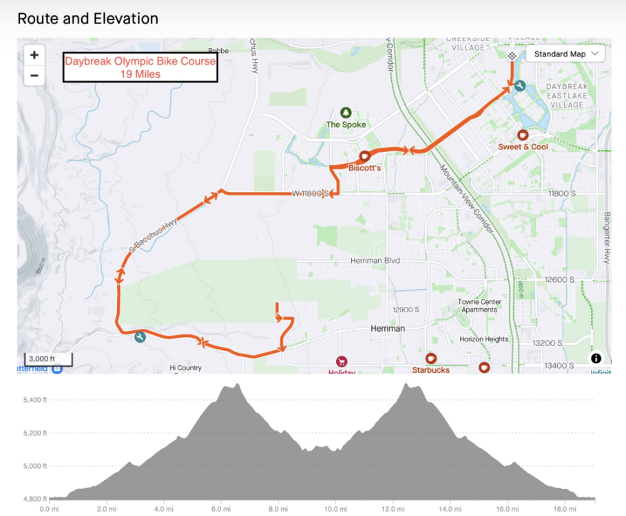 Run course (Sprint x1, Olympic x 2)) Course Map